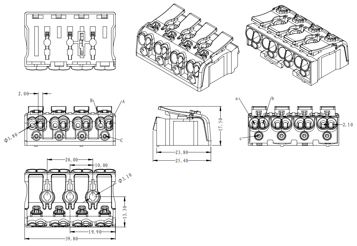 | B孔 | 實(shí)芯線 | 0.5-1.5mm2 | AWG 16-20 |