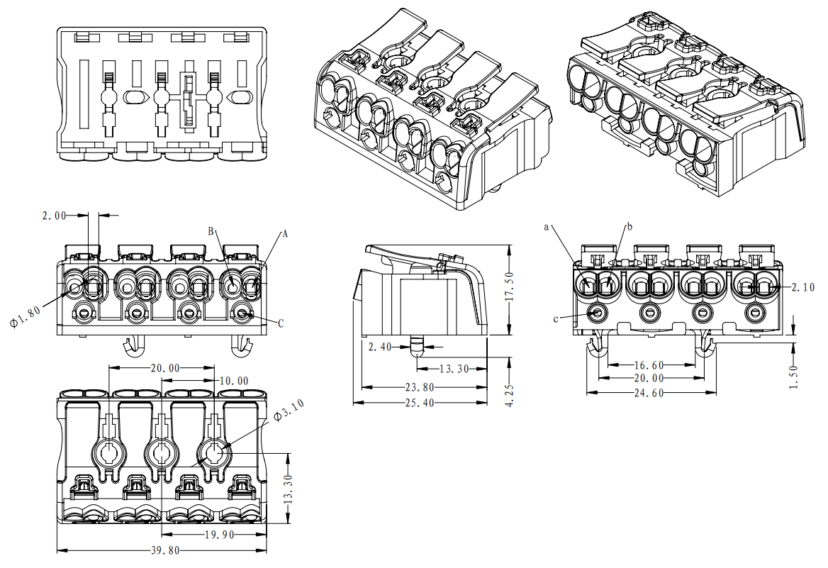 | 用戶側(cè) | a/b孔 | 實(shí)芯線 | 0.5-2.5mm2 | AWG 14-18 |