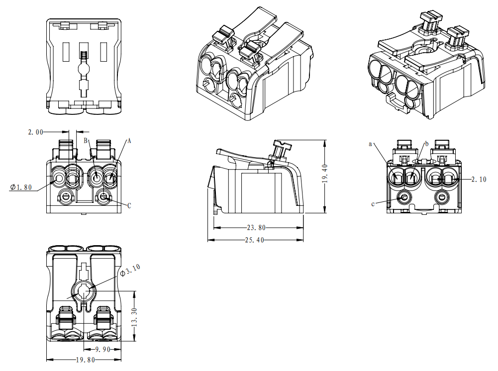 | 工廠側(cè) | A孔 | 實(shí)芯線 | 0.5-2.5mm2 | AWG 14-20 |