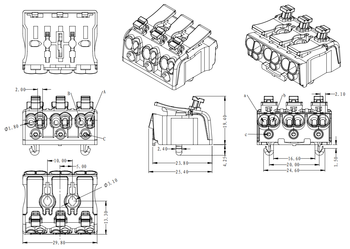 | B孔 | 實(shí)芯線 | 0.5-1.5mm2 | AWG 16-20 |