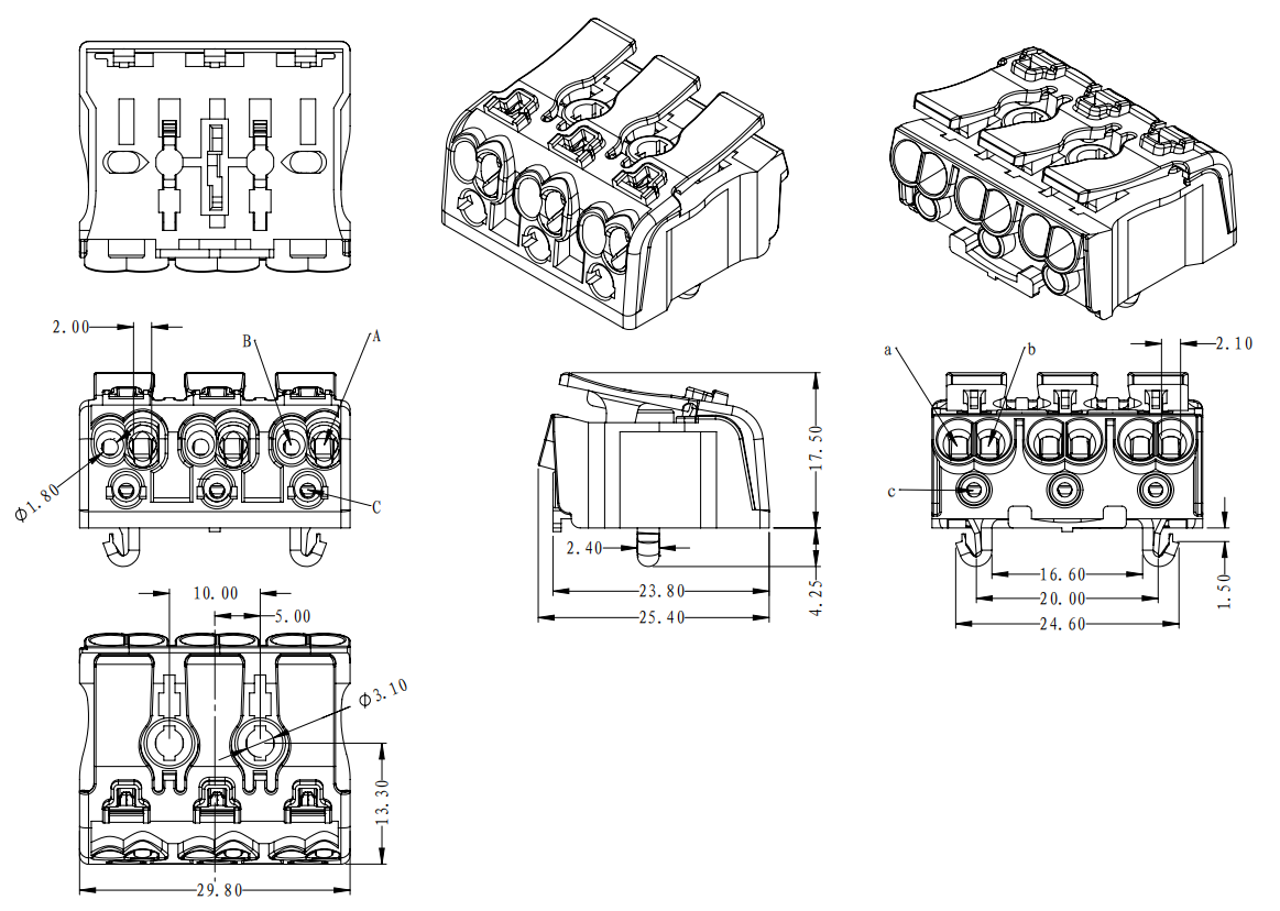 | 工廠側(cè) | A孔 | 實芯線 | 0.5-2.5mm2 |